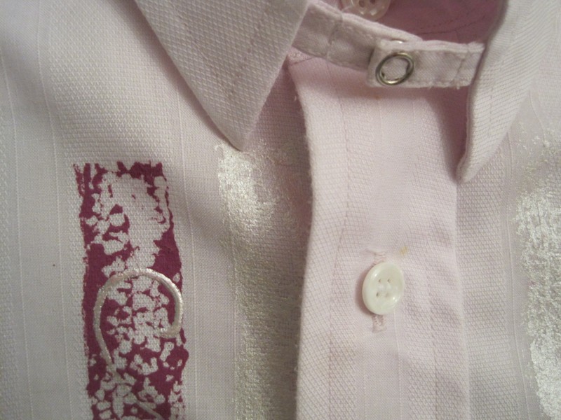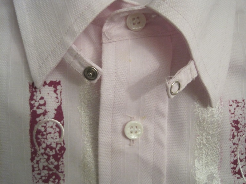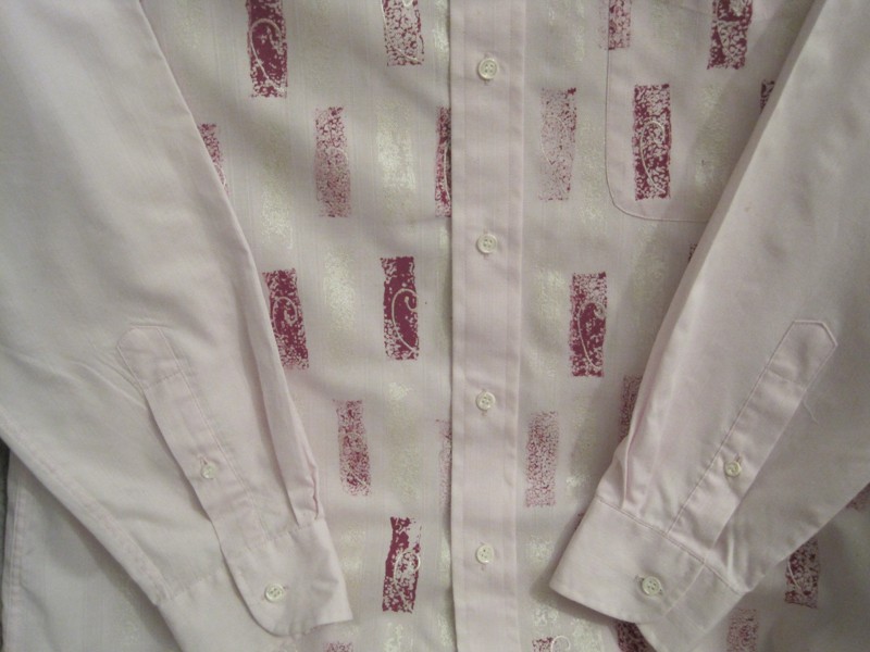 Růžová košile s dlouhým rukávem je ručně zdobená na obou předních dílech.Délka je 78 cm, objem hrudníku 114 cm, rukávy 66 cm.vel. 39/40. exluzivní kvalita- 70procent bavlna, 30 procent polyester.Unisex.