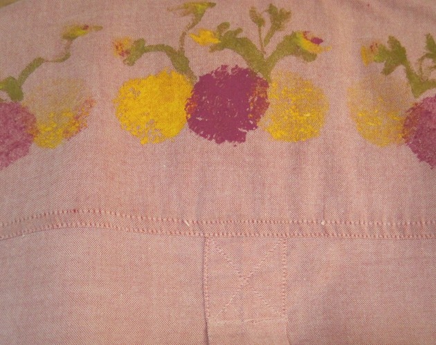 Košile s dlouhým rukávem ve starorůžové barvě je ručně malovaná.Unisex. Délka 72 cm, objem hrudníku 124 cm, rukávy 61 cm.