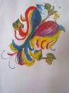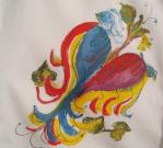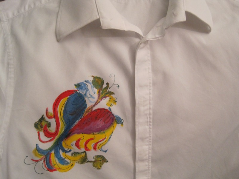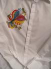Dámská bílá košile s dlouhým rukávem je ručně malovaná na pravém předním díle. Motiv vyjadřuje veselou náladu z příchodu jara, sluníčka, přírody a lásky.